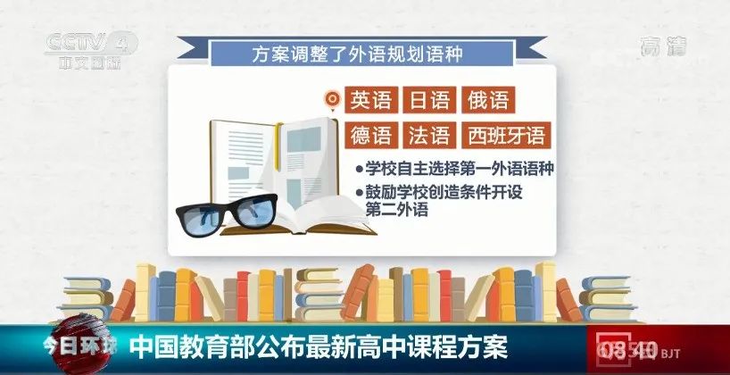 6月3日,中國教育部對普通高中課程方案進行了修訂。最新的普通高中課程方案中,調整了外語課程結構規劃,在英語、日語、俄語基礎上,增加德語、法語和西班牙語。