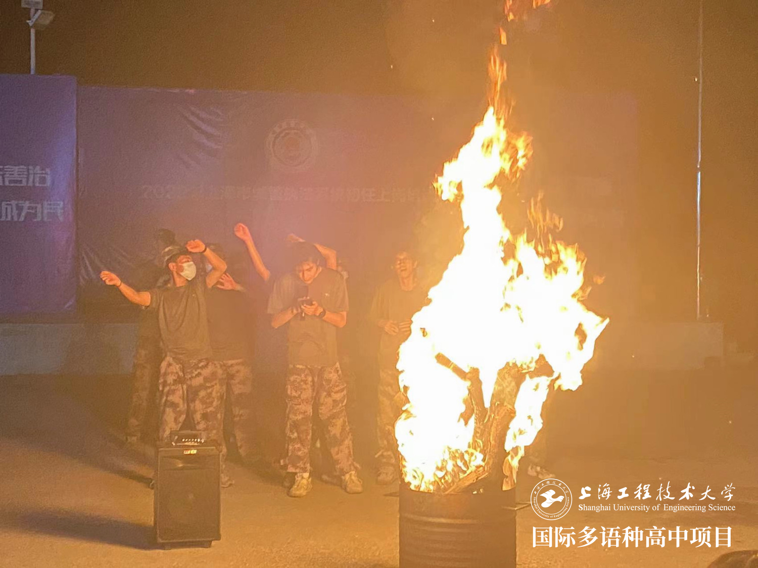 木柴的火光映亮了學(xué)員們的臉龐。圍轉(zhuǎn)在火桶的周圍,學(xué)員們跳起了舞蹈,點(diǎn)點(diǎn)火星如同一個(gè)個(gè)紅色的小精靈,給夜晚增添了無限姿色。