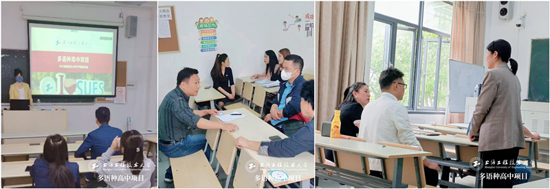 隨后,西語、日語教研組老師分組介紹各班學情現狀、國際等級考試要求和考試規劃、高中課程設置和教學模式、及課外語言文化活動等方面的情況,并展示了學生日常優秀作業。