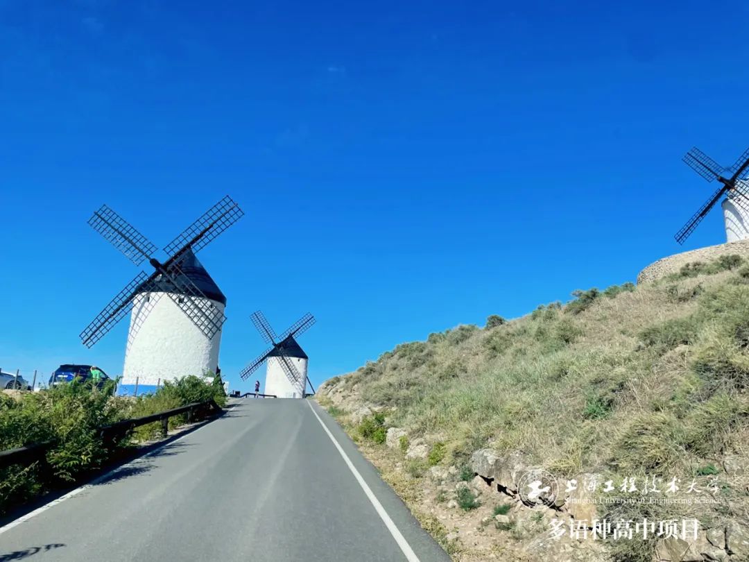 和游學營的師生一起,我參觀了充滿藝術風情的風車小鎮,這里也是堂吉訶德大戰風車的背景發生地。在龐大的風車邊,是極具特色的孔蘇埃格拉城堡,高聳的城墻似乎還在講述它昔日的輝煌。我們在城堡中,也體驗了一次騎士受勛儀式,時間仿佛重回中世紀。當狂風吹起野草,金色的陽光觸及地平線,時間在這一刻成為永恒。直到夕陽的余暉慢慢消散,夜幕漸漸降臨,夜晚接替白晝開始新的輪回。