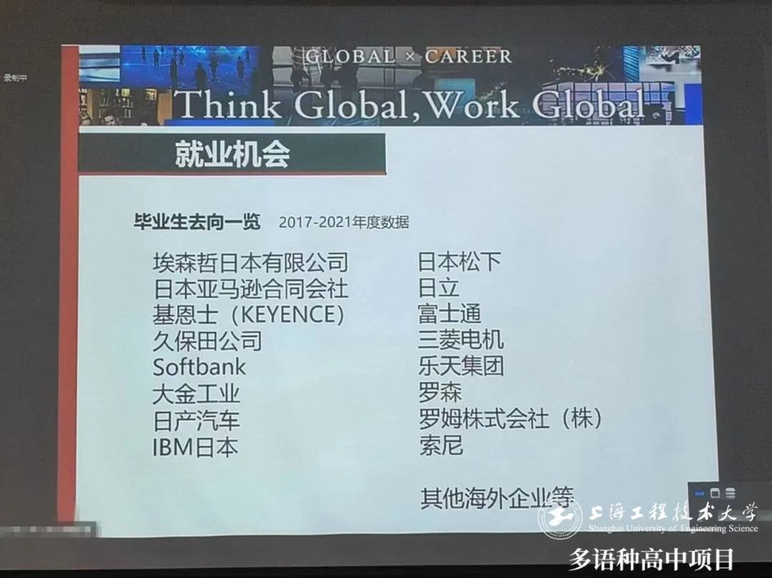 本學期中,【日本大學系列講座】已為我校日語班同學帶來了名古屋大學、大阪大學、早稻田大學等日本一流國公立和私立大學,及帝京大學、東亞大學、育英館大學、大手前大學、環太平洋大學等眾多優質私立院校的連線介紹,讓同學們能直觀了解日本大學濃厚學術氛圍和豐富精彩的大學生活,同時也知曉各類院校的錄取要求。