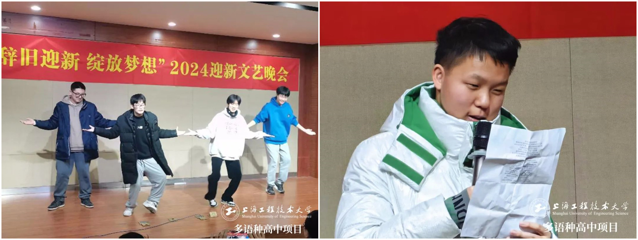 時光匆匆,2024年悄然而至。元月9日下午,上海工程技術大學的報告廳里熱鬧非凡,宛如一片歡樂的海洋——上海工程大多語種高中項目的同學們正在舉行以“辭舊迎新,綻放夢想”為主題的迎新春文藝匯演。
