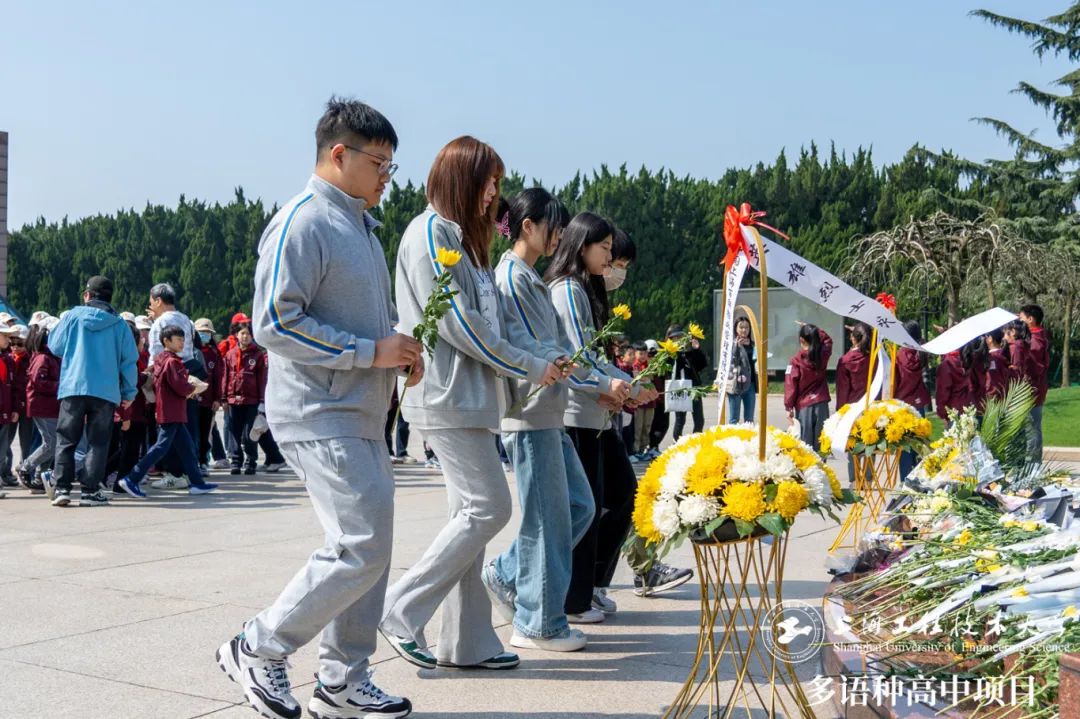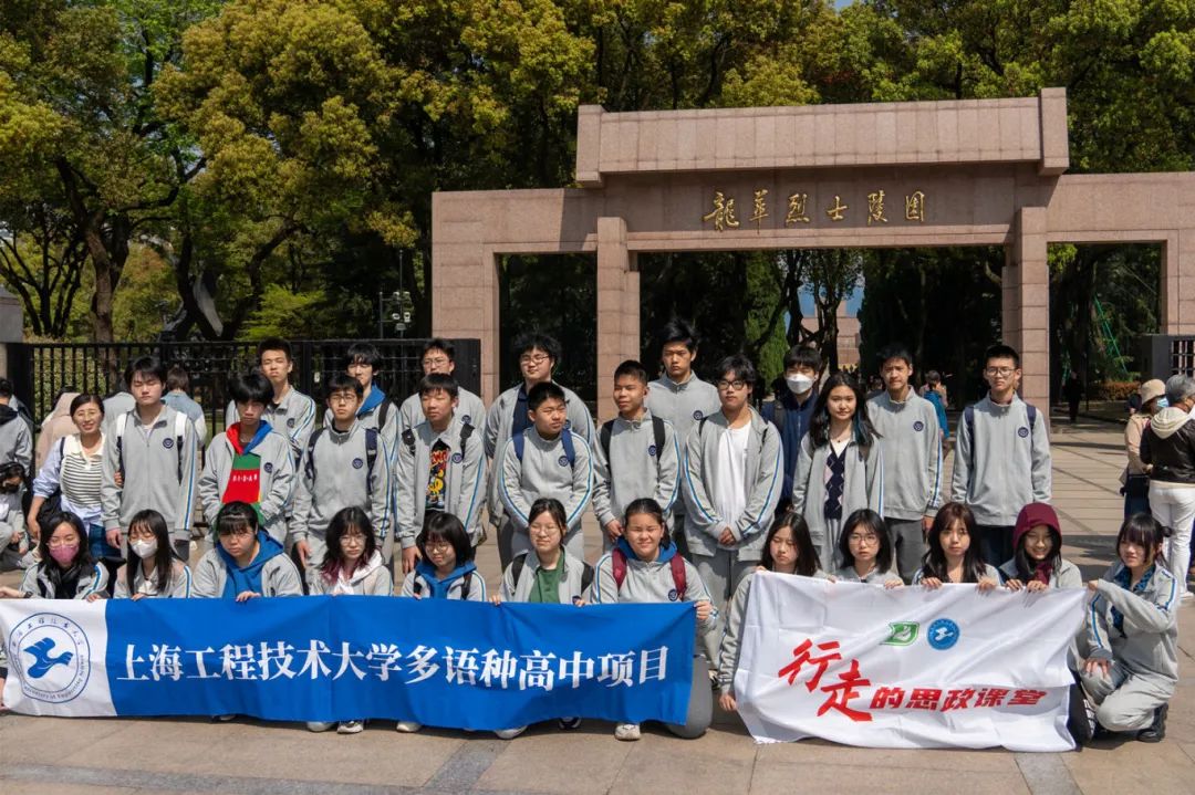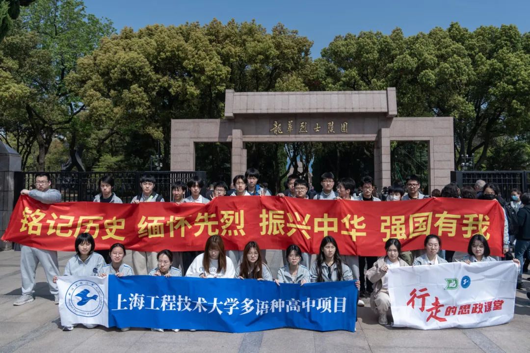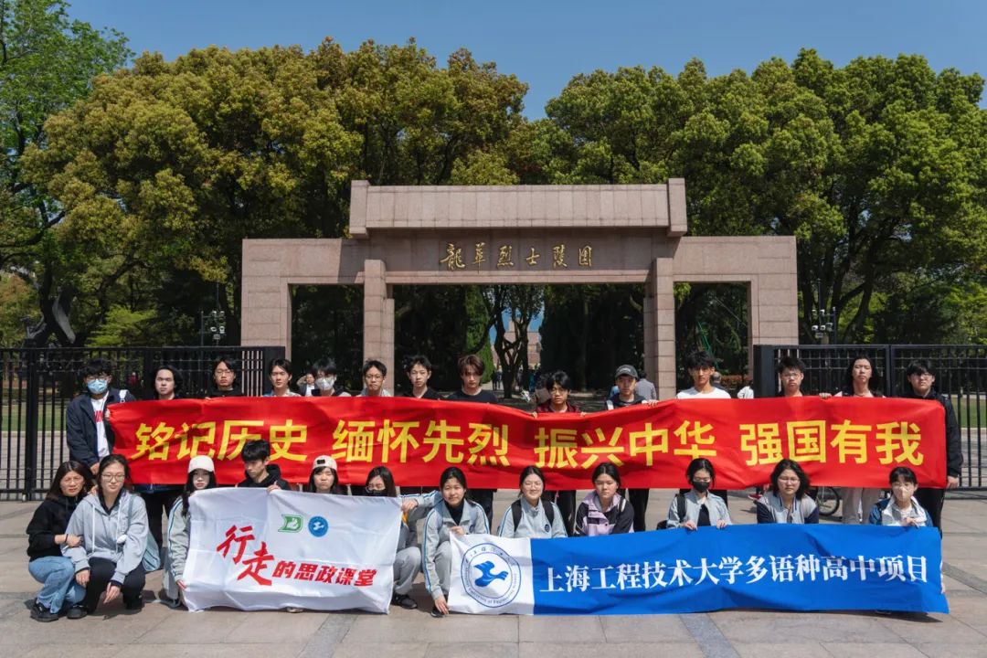 清明時節,上海工程技術大學多語種高中項目開展了一場龍華烈士陵園清明祭掃活動。清晨的陽光灑在陵園內的青松翠柏上,綠草如茵,環境幽靜肅穆。烈士們的雕塑矗立在那里,神圣而莊嚴,仿佛在向世人講述著他們曾經的英勇事跡。
