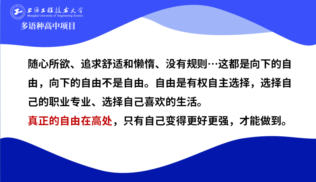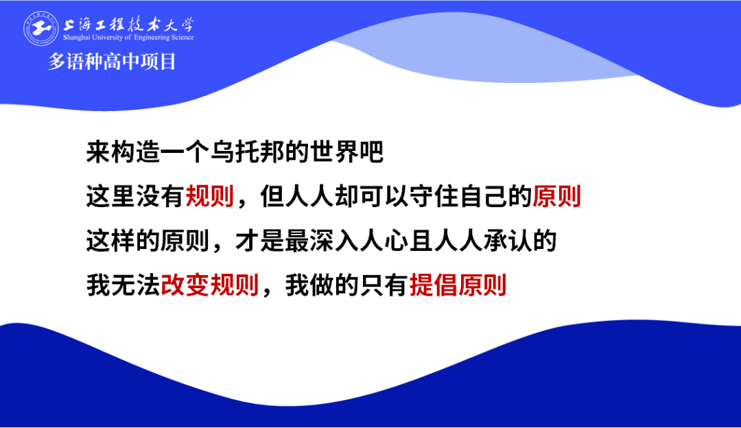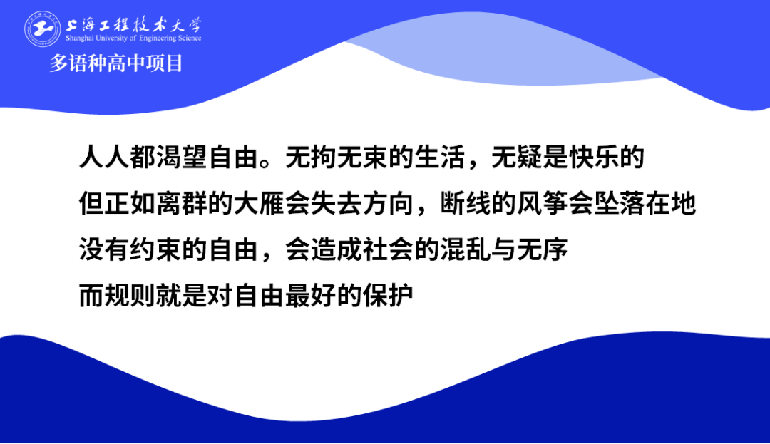 3月15日下午,在上海工程大多語種高中項目24級春季班的綜合素養課上,由葉宇宏老師帶領同學們開展了一場有關“自由與規則”的深入探討。