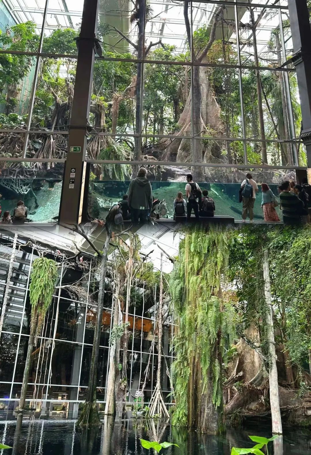 我沿著一條小路進入雨林內部觀賞它的勃勃生機。整個內部空間充滿了濕熱感,上面棲息著鳥類,中間有昆蟲和蛇,下面有哺乳動物和龜,水中有各種魚類,讓人應接不暇。盡管這只是雨林的一角,但在科技的加持下,我在熱鬧繁華的巴塞羅那就能體驗到和諧共生、不斷繁衍的真實熱帶雨林,屬實是一次奇妙的體驗。
