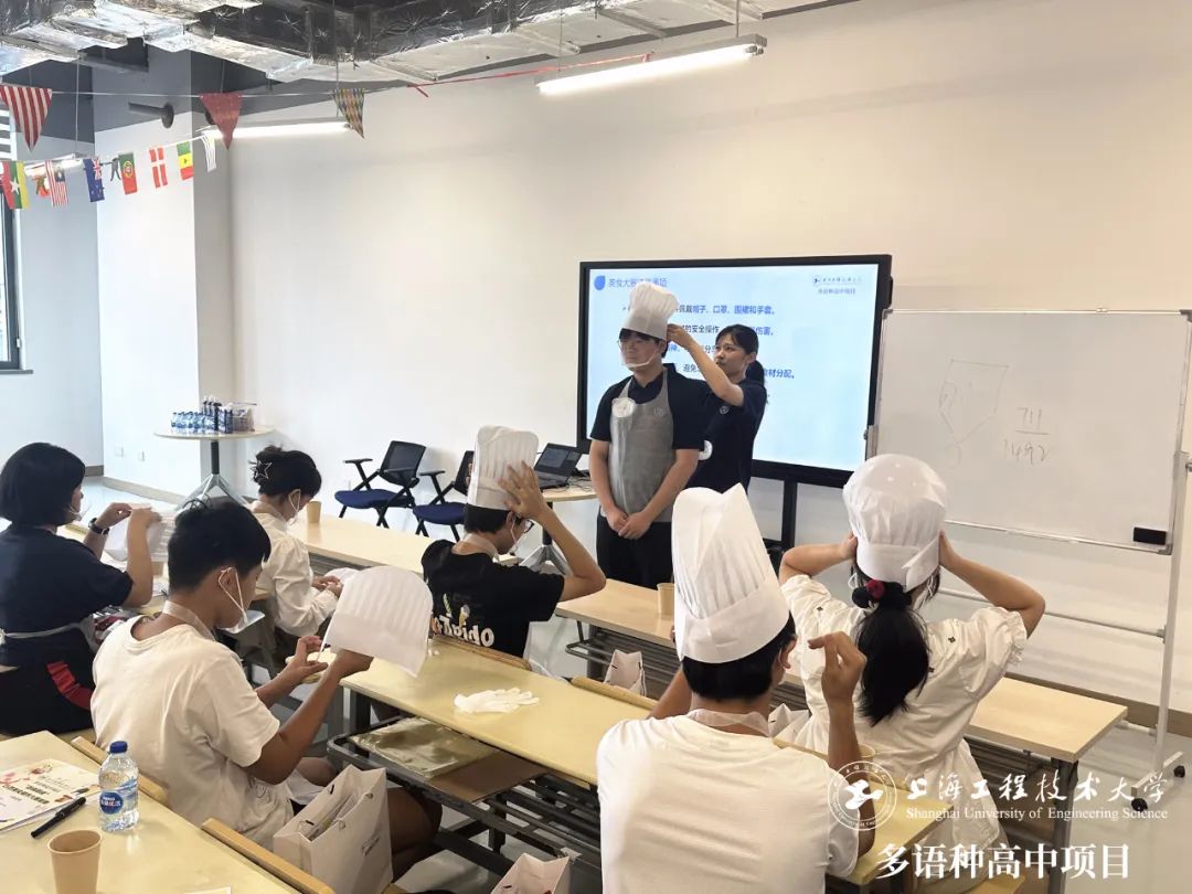 光是講解環(huán)節(jié)就已經(jīng)讓在場(chǎng)的同學(xué)躍躍欲試,迫不及待想要開始制作美食,不過(guò)大家還是在老師的指導(dǎo)下細(xì)心地穿戴好口罩、圍裙、手套等衛(wèi)生防護(hù)用具,為自己與他人的食品安全負(fù)責(zé)。