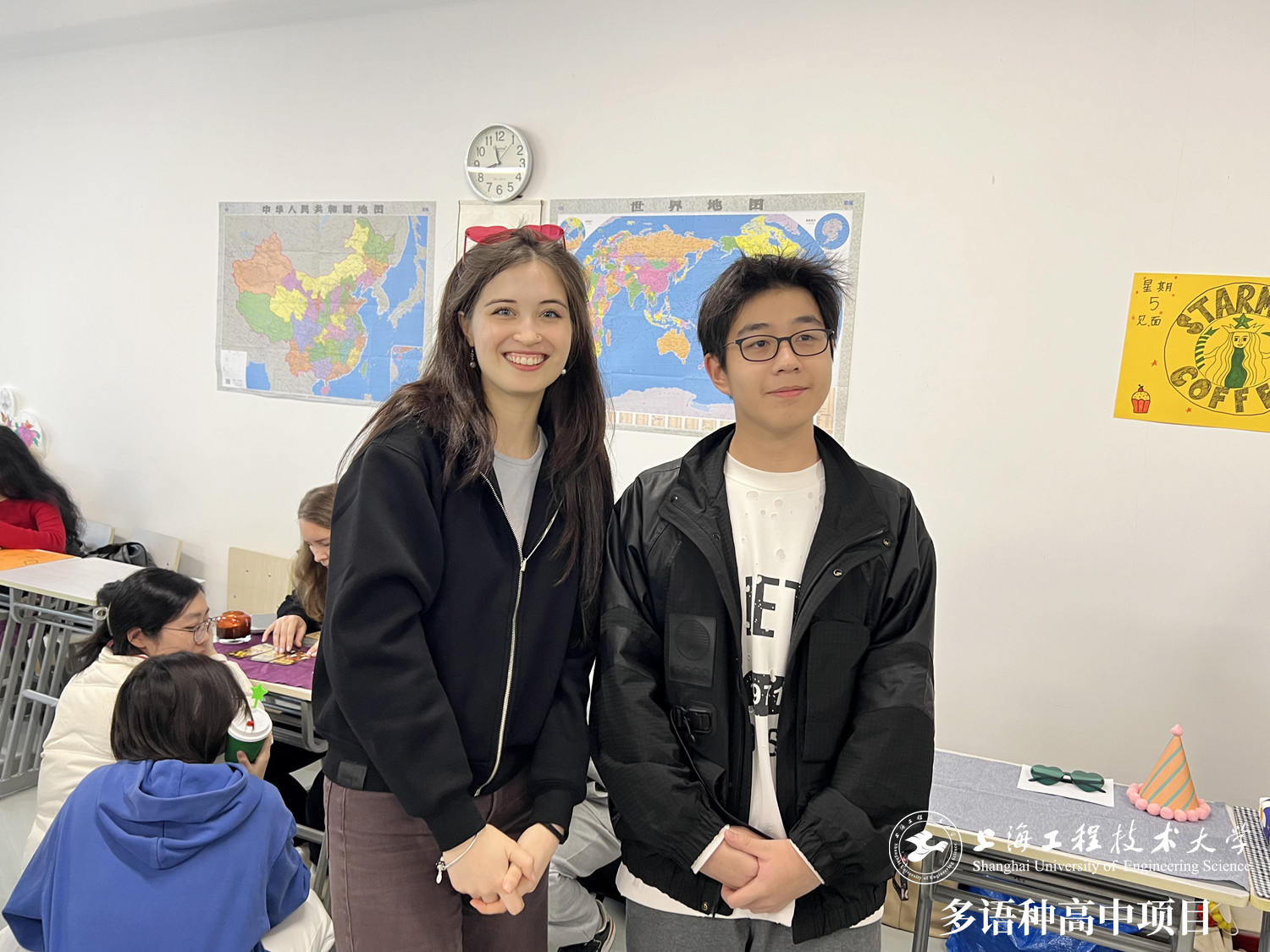 走進會場,平日上課的教室化身熱鬧的集市,攤位錯落有致地排列著,各類物品琳瑯滿目。同學們帶著好奇與期待的笑容,穿梭于各個攤位之間。在這里,語言不再是交流的障礙,而是搭建友誼橋梁的基石,每一次對話都仿佛打開了一扇通往新世界的窗戶。