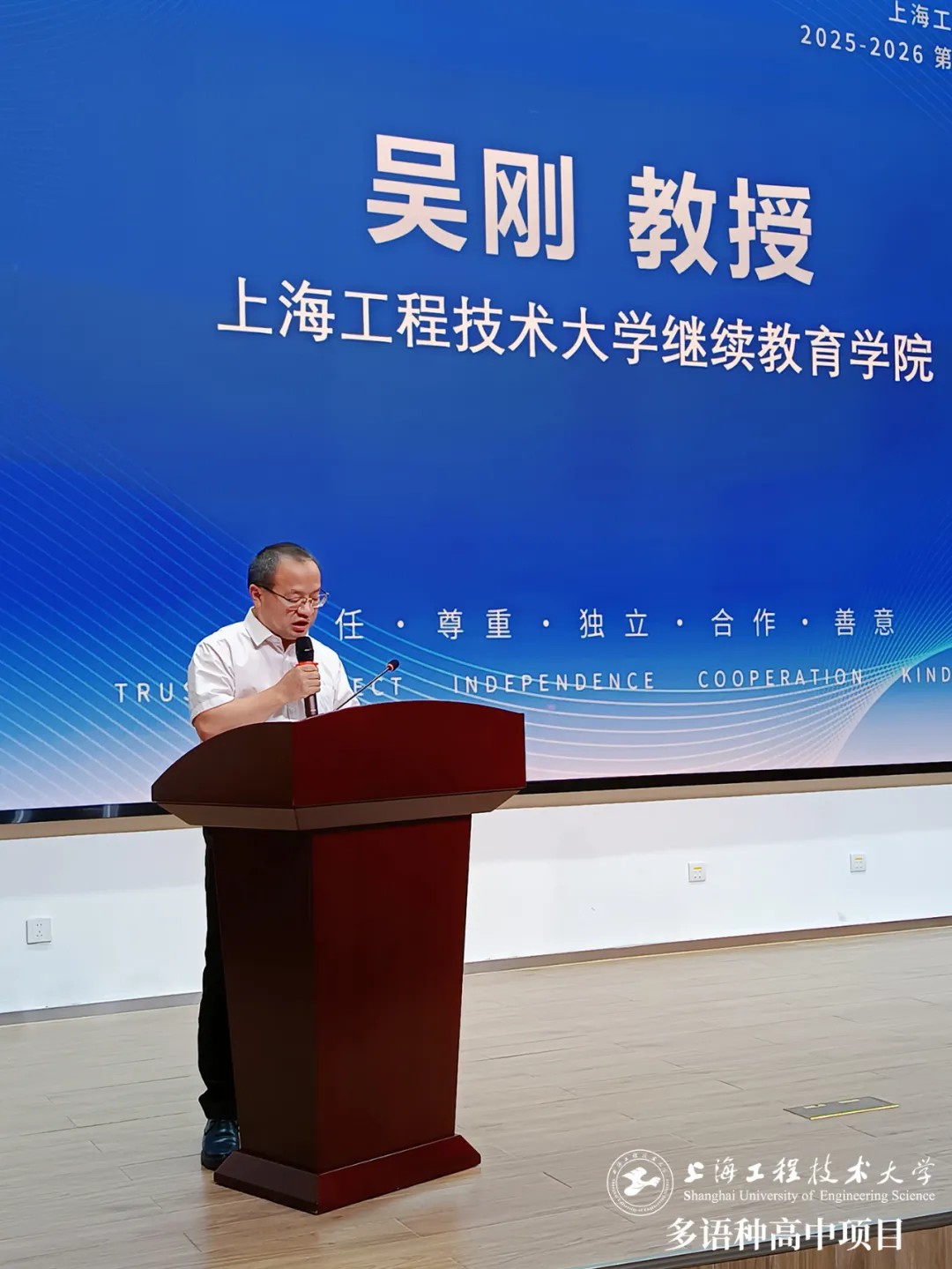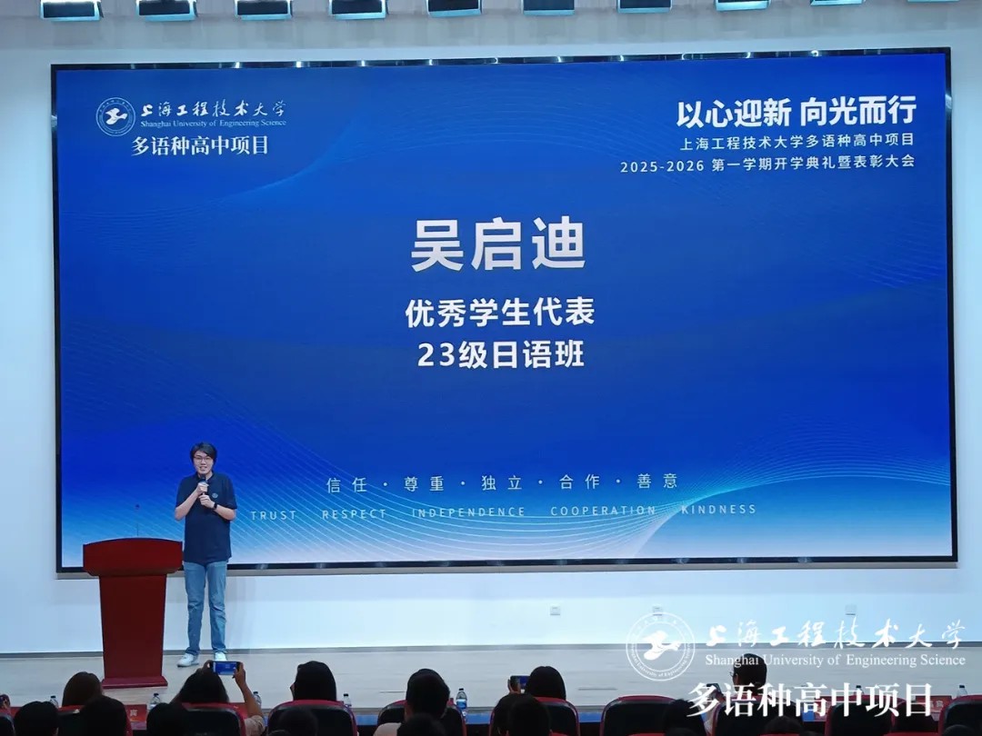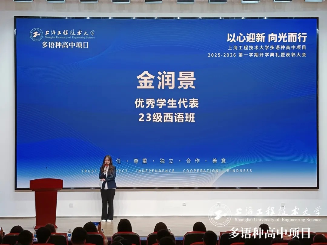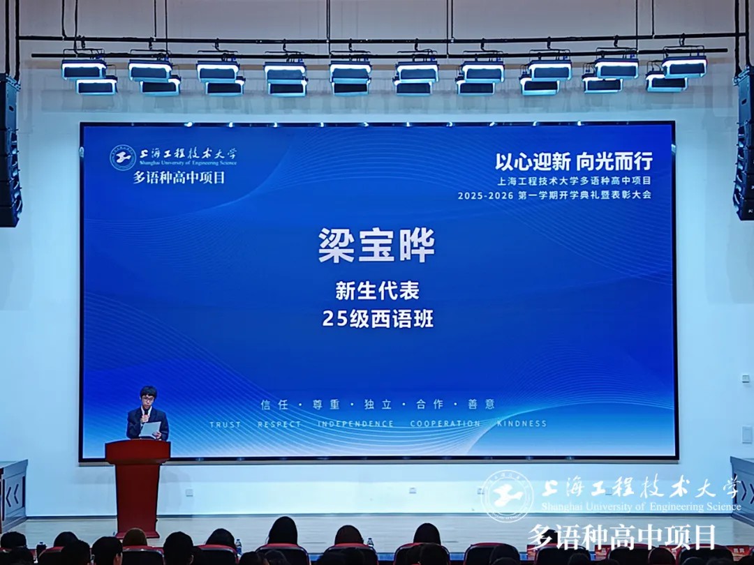 9月12日上午,上海工程技術(shù)大學多語種高中項目2025-2026學年第一學期開學典禮暨表彰大會在產(chǎn)教融合大樓一樓報告廳成功舉辦。