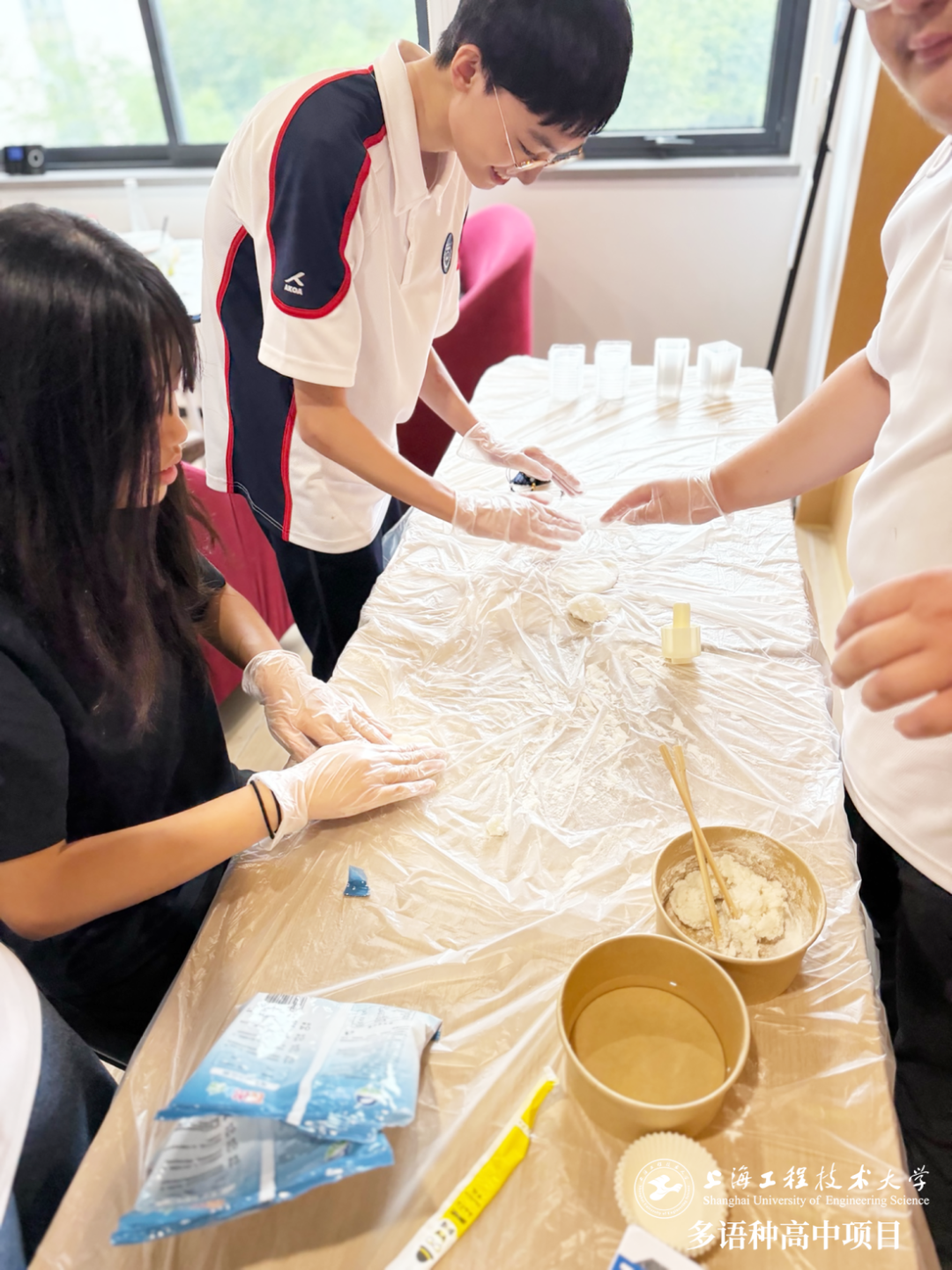午飯后的教學樓休息區(qū),很快就化作一片歡聲笑語的海洋。在冰皮月餅制作區(qū),同學們在學生志愿者的指引下,紛紛動手體驗揉面、包餡、壓模的樂趣。一位來自北方的同學更是挑起了大梁:“我家就是北方人,揉面可是我的‘家傳技能’!”成為了小組里的“技術指導”,引來一片贊嘆。