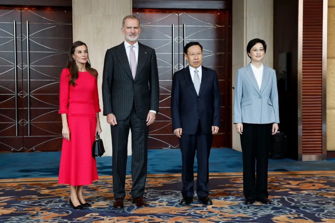 11月10日,西班牙國王費利佩六世與萊蒂西婭王后抵達四川成都,開始對中國進行為期三天的國事訪問。11月12日上午,國家主席習近平在北京人民大會堂會見了費利佩六世。這是費利佩六世登基后首次訪華,也是西班牙國王時隔18年再次到訪中國。在訪問期間,國王夫婦分頭行動:國王費利佩六世主持了“中國—西班牙商務論壇”,并參觀了民航西南空管局;而萊蒂西婭王后則一襲紅裙出現在望江樓公園,參與了西班牙詩人安東尼奧·馬查多誕辰150周年的文化活動。11月13日王后萊蒂西亞更是訪問了北京外國語大學,和同學們親切交流。
