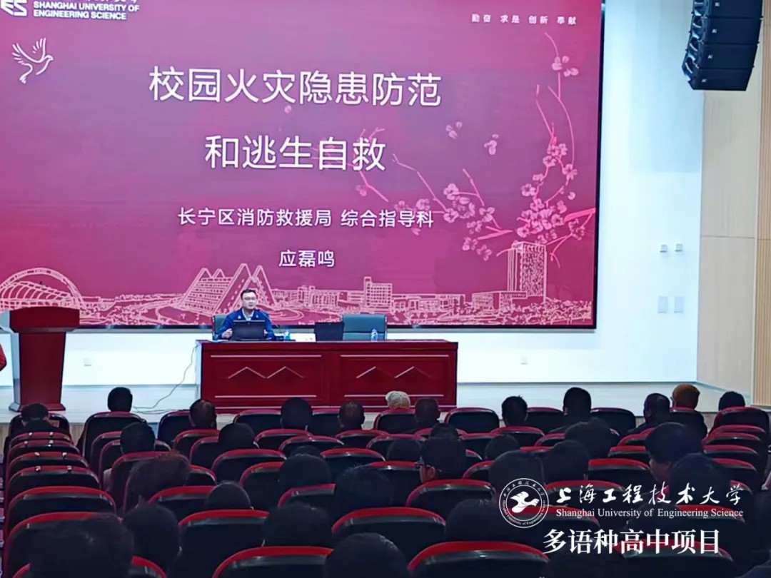 活動由長寧區消防救援局綜合指導科應磊鳴同志主講。他結合近年來全國范圍內發生的校園及家庭典型火災案例,用生動的語言分別講解了用火安全和用電安全兩方面的內容。通過解析火災現場監控視頻,剖析火災發生的主要原因,讓同學們直觀感受到消防安全的重要性,提醒同學們警惕電器使用不當、易燃物品存放等常見風險。