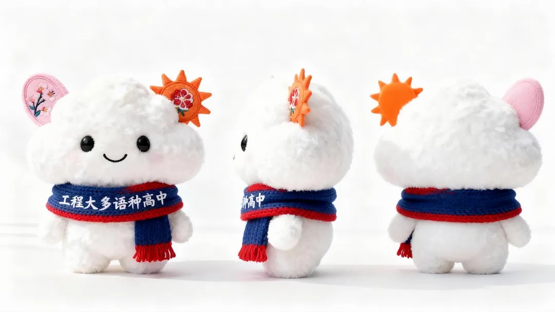 工程大多語種高中項目于今日正式發布校園吉祥物——“云朵精靈”。該形象以“云”為核心意象,融合中西日多元文化元素,承載“天道”之精神,寓意溝通、變通與無限可能。
