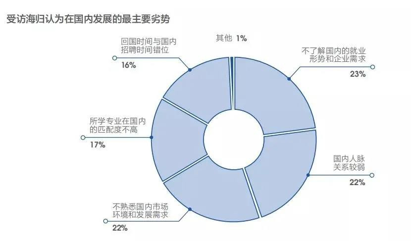“不了解國內(nèi)的就業(yè)形勢和企業(yè)需求”逐漸成為受訪海歸在國內(nèi)發(fā)展的主要劣勢。