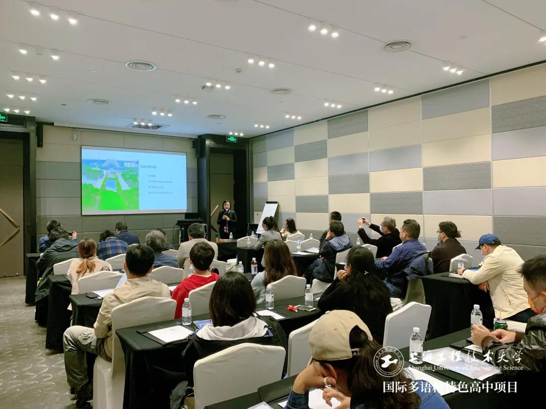 ▲ 葉老師介紹國際多語種高中課程教育理念和課程體系