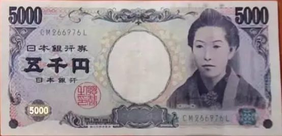 5000日元是樋口一葉,日本著名女作家,是日本文壇象征。這是日本唯一以女性人物做紙幣頭像的人物,在世界范圍內也是少有的。她是十九世紀日本著名平民作家,是日本近代現實主義文學的早期開拓者之一。在她短短24年的人生中,創作了大量反映當時社會現狀、關注日本女性的優秀作品,成為當時婦女社會角色變化的先驅。