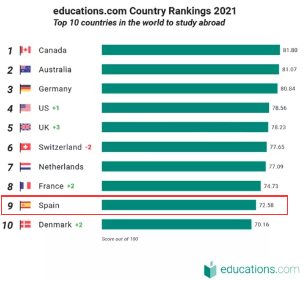 同樣,在educations.com創建的2021年最佳出國留學目的地排名中,西班牙也位列前十!