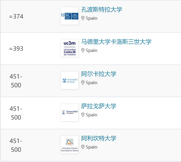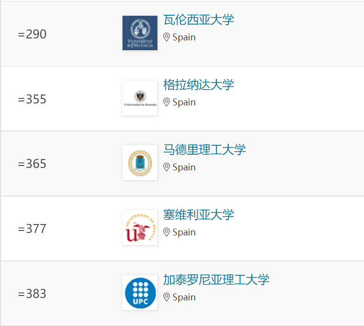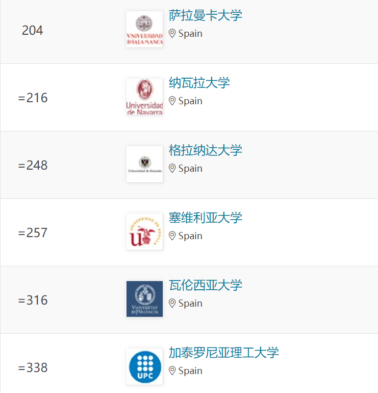 西班牙大學排名情況