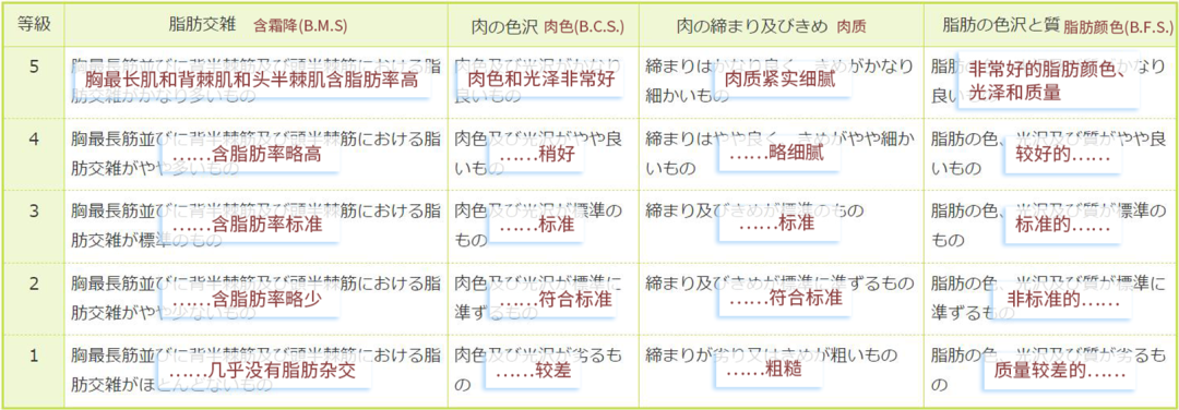 2、肉質(zhì)等級(jí)