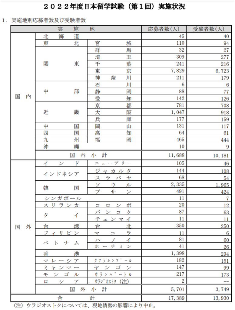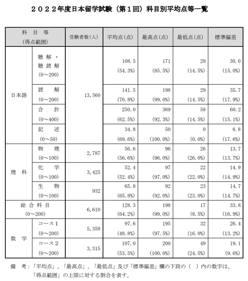 目前第一次考試已經(jīng)結(jié)束了,第二次考試的報(bào)名也在7月29日截止。日本學(xué)生支援機(jī)構(gòu)公布了2022年度第一次日本留學(xué)考試的實(shí)施結(jié)果。