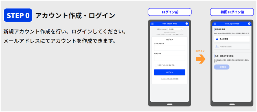 首先,在入境日本前大家需要通過郵件申請方式注冊VJW賬戶登錄個人信息。