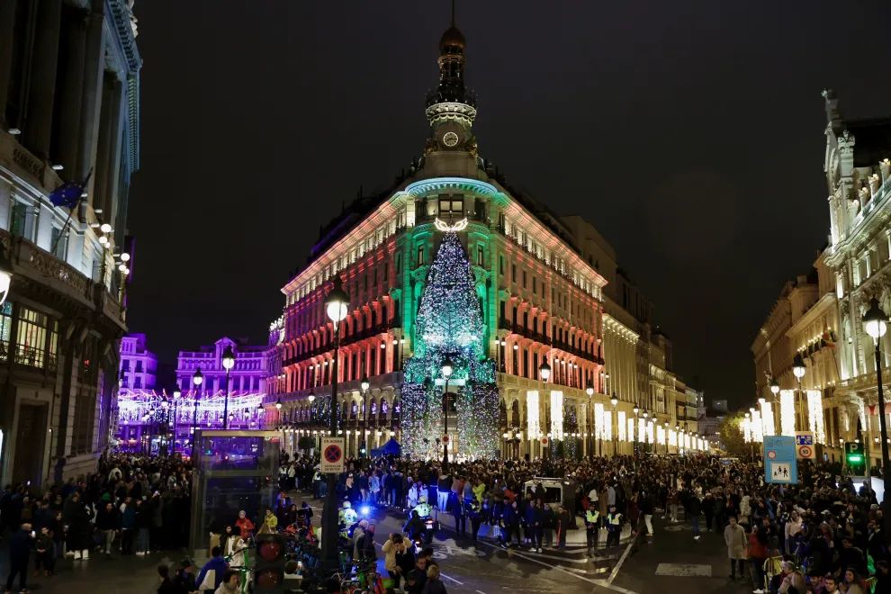 馬德里作為西班牙首都,也是商業(yè)和文化極為繁榮的城市,每年從萬圣節(jié)正式結(jié)束后便開啟了布置燈飾的浩大市政工程。馬德里市中心的廣場(chǎng)和街道上,各式各樣的圣誕燈飾已經(jīng)落成,歐洲人“過年”的味道越來越濃了。