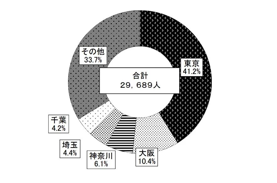從就業地區來看,東京占比41.2%,再加上千葉4.2%、琦玉4.4%和神奈川6.1%,選擇在東京圈就業的占比達到了55.9%。大阪占比10.4%。