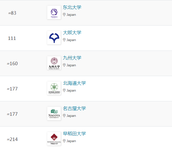在本次排名中,日本大學在五大學科領域均有上榜Top100,以下是具體排名情況: