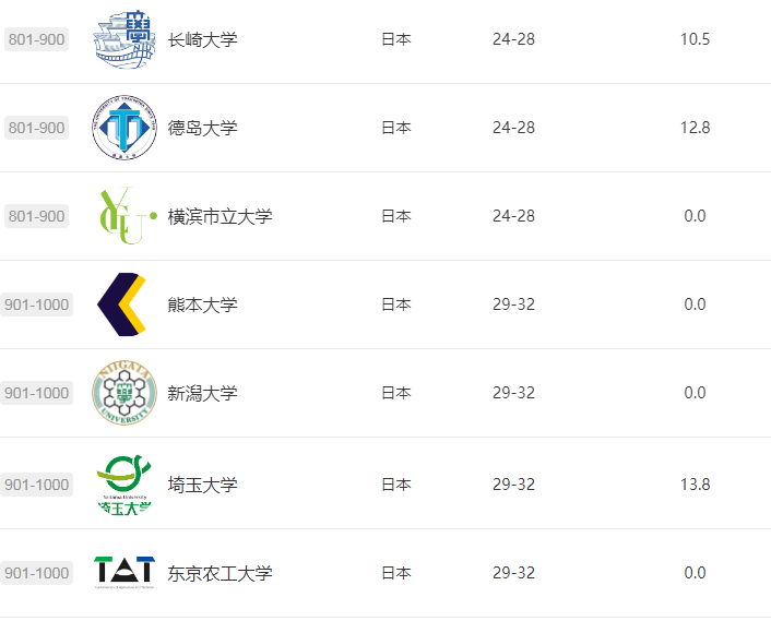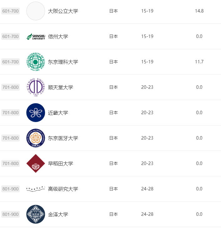 ◆北海道大學、東北大學(仙臺)、筑波大學、慶應義塾大學、九州大學、沖繩科學技術大學院大學、廣島大學位于世界前500強。