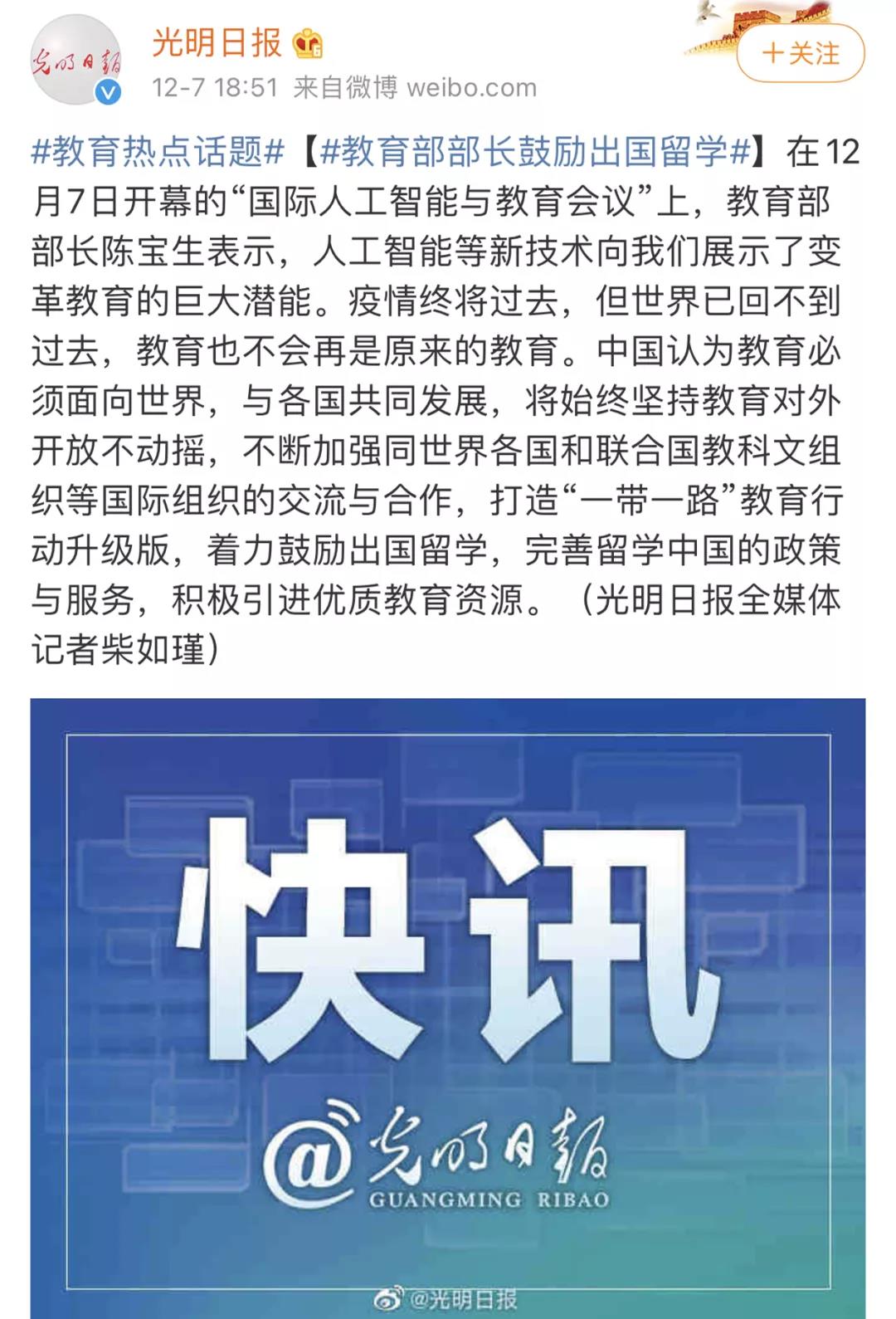 據(jù)《光明日?qǐng)?bào)》消息,在12月7日開(kāi)幕的“國(guó)際人工智能與教育會(huì)議”上,教育部部長(zhǎng)陳寶生表示,人工智能等新技術(shù)向我們展示了變革教育的巨大潛能。疫情終將過(guò)去,但世界已回不到過(guò)去,教育也不會(huì)再是原來(lái)的教育。