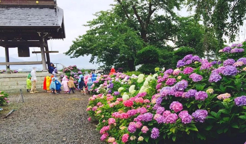 到了夏天某個雨后下午,濕濕但帶有青草香氣的空氣沁人心脾,各色各樣的繡球花格外清新美麗,山水草木也仿佛皆有靈性。我們會約上好友、穿著浴衣(日語ゆかた,意為夏季和服)一起參加在河邊舉辦的花火大會(日語“花火”,意為煙花),十分愜意。